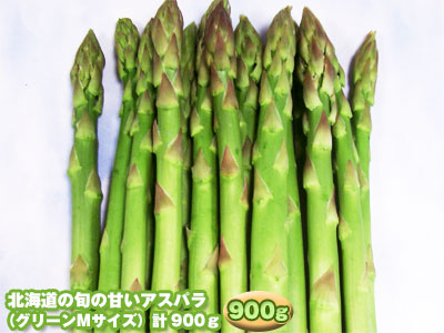 北海道の旬の甘いアスパラ(おためしのグリーンMサイズ)計900g、送料無料、予約販売、お届けは5月中旬〜ご注文順にお届け(022477)